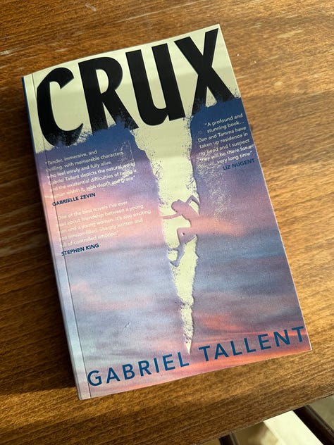 Anyway, Tallent has a new novel out called Crux and besides the fact I love the cover, it’s about a pair of young friends aspiring to be professional rock climbers. The first 50 pages have raced by so far. I’ll see how it pans out.